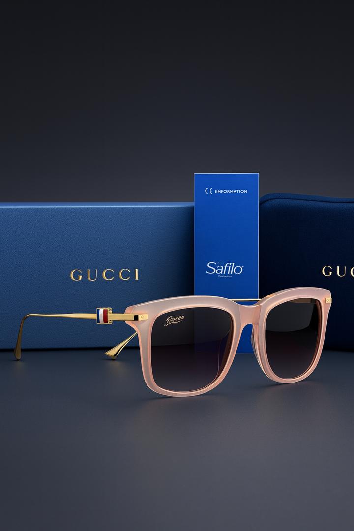 عینک آفتابی زنانه گوچی مدل G0295 با فریم صورتی و دسته طلایی