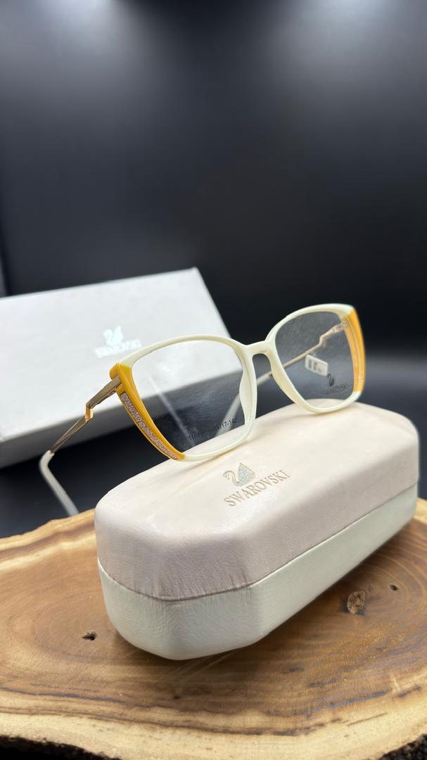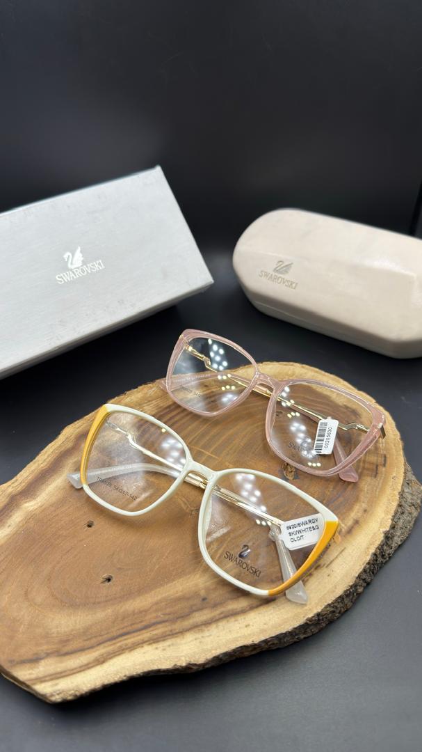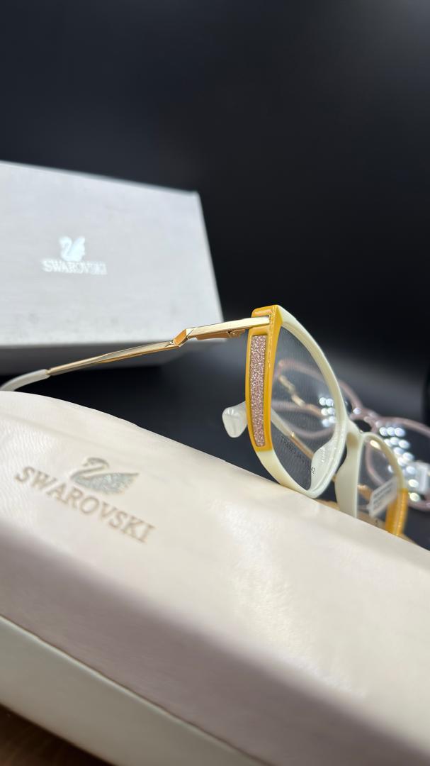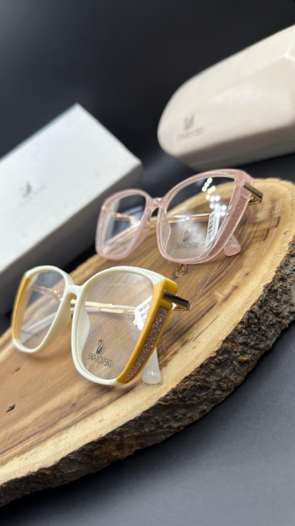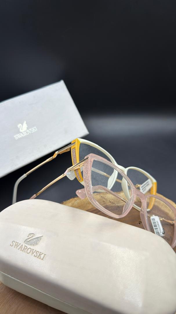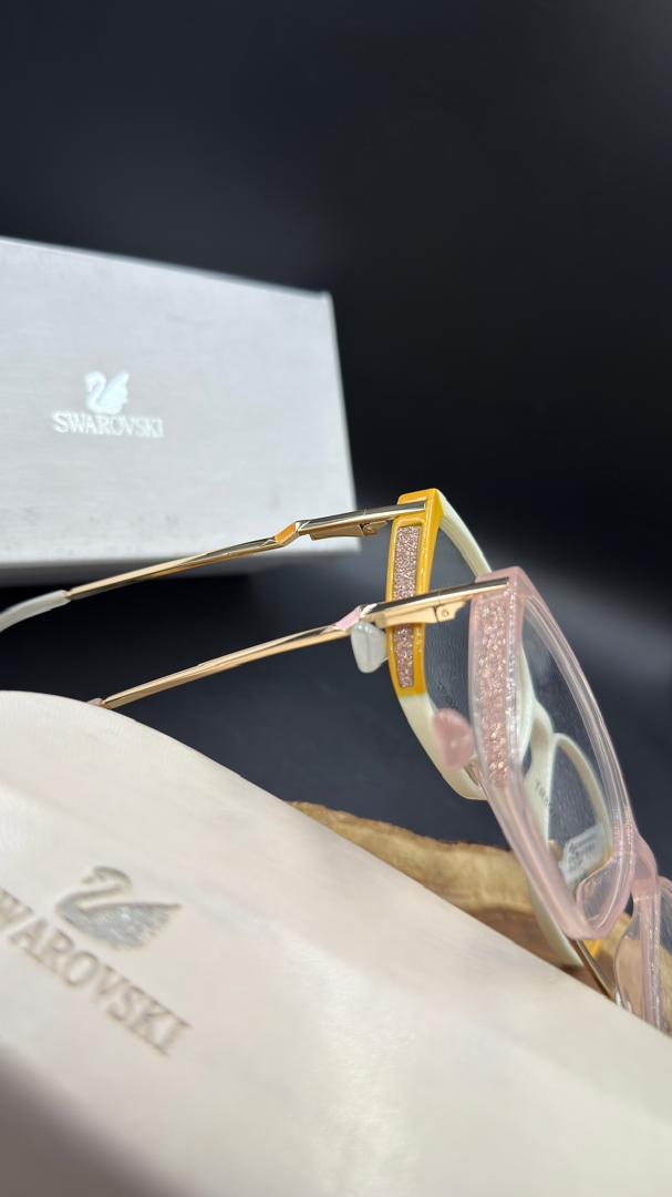 کمتر برندی در صنعت مد و اکسسوری وجود دارد که مانند Swarovski بتواند ظرافت و درخشش را در طراحی به این زیبایی ترکیب کند. هر دو مدل عینک موجود در تصویر، جلوهای مدرن و زنانه دارند. فریم مربعی سفید-زرد با طراحی خاص گوشهها و ساختار زاویهدارش، حس جسارت و اعتماد بهنفس را بهخوبی منتقل میکند. در مقابل، مدل صورتی شفاف با خطوط نرمتر و رنگ لطیف، مناسب افرادی است که به دنبال جلوهای ملایمتر و رمانتیک هستند.