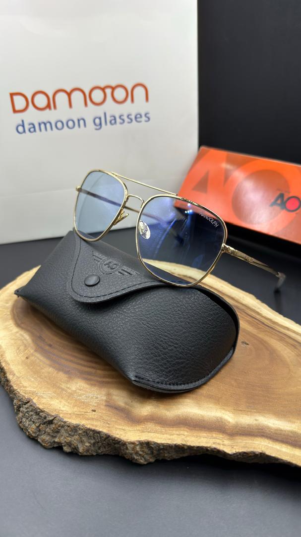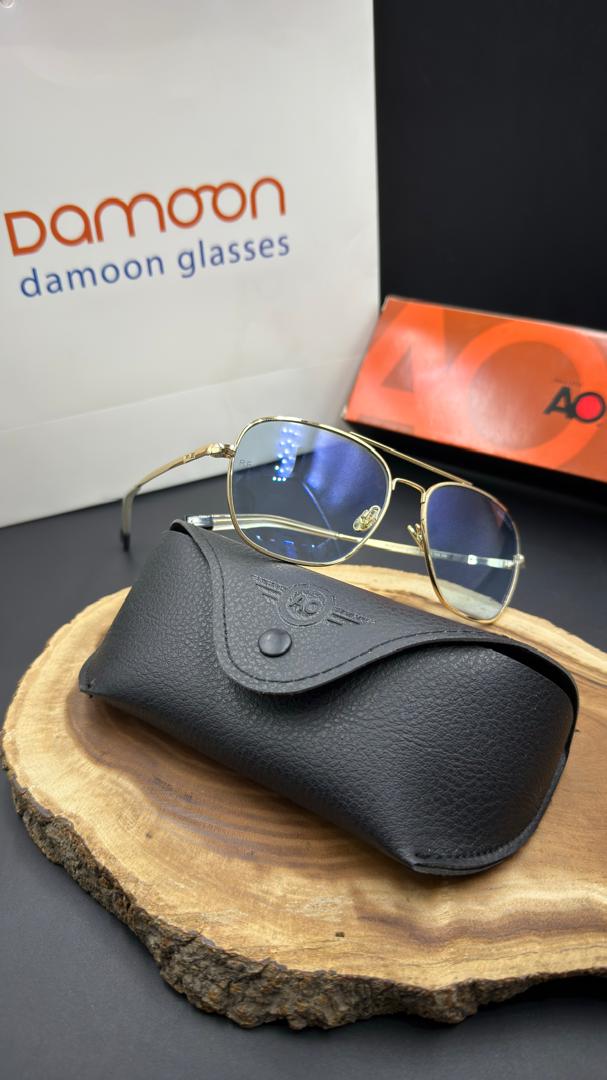 فریم فلزی طلایی رنگ با طراحی کلاسیک خلبانی، جذابیت و وقار ویژهای به این عینک میدهد. ترکیب طلایی و آبی حس لوکس بودن و استایل خاص را القا کرده و آن را به انتخابی ایدهآل برای آقایان و بانوانی که به جزئیات اهمیت میدهند تبدیل کرده است.