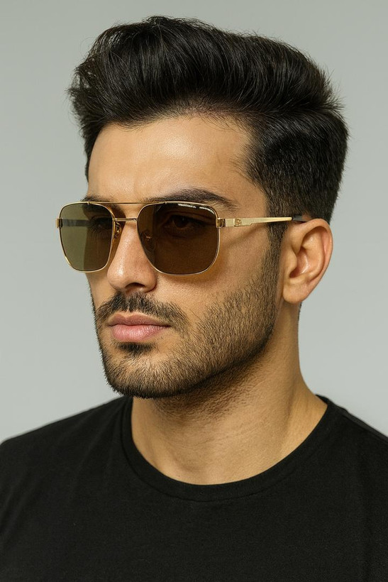 فریم فلزی طلایی آن جلوهای لوکس و رسمی به استایل شما میدهد و عدسیهای قهوهای گرادیانی علاوه بر ظاهر جذاب، چشمها را در برابر اشعههای مضر خورشید محافظت میکند.