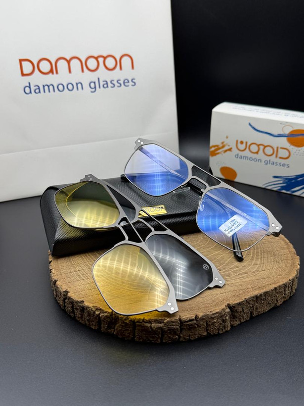 عینک بالمین 7028 یک فریم فلزی مینیمال و مقاوم است که با سه کاور مگنتی عرضه میشود: لنز شفاف بلوکات برای کار روزمره و کار با موبایل/لپتاپ، کاور آفتابی پلاریزه UV400 برای فضای بیرون، و کاور زرد شب برای کاهش خیرگی چراغها. همهچیز در یک عینک