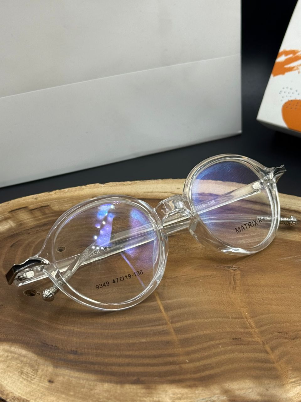 فریم عینک طبی شفاف گرد مدل 9349 از آن دسته فریمهایی است که هیچوقت از مد نمیافتد. طراحی گرد آن بهخصوص برای صورتهای بیضی، مربعی و قلبی انتخابی بسیار هوشمندانه محسوب میشود و به تعادل چهره کمک میکند.