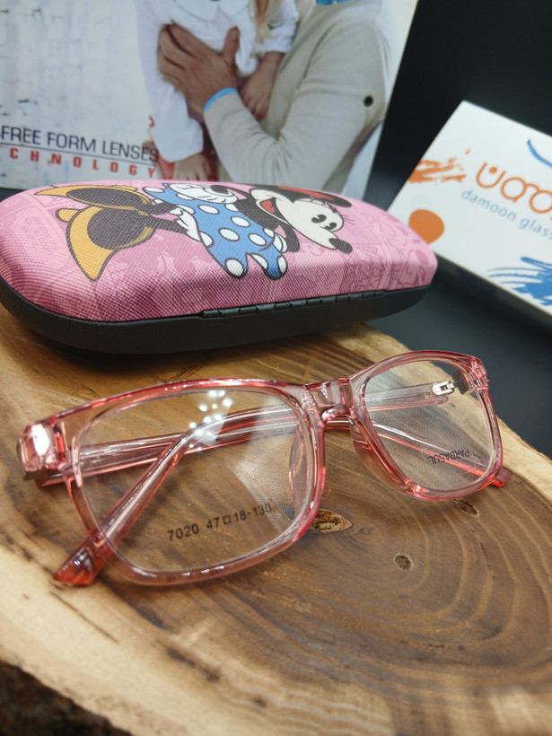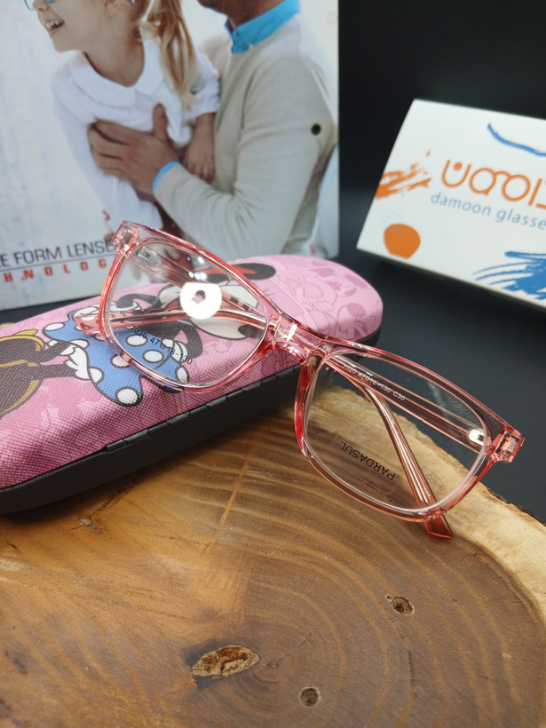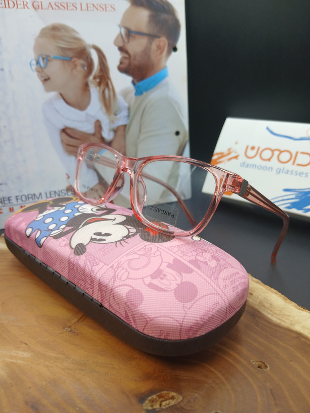 دستههای فنری این مدل، نقطه قوت اصلی آن محسوب میشوند؛ زیرا در استفاده طولانیمدت و بازی کودک، دوام فریم حفظ شده و فرم خود را از دست نمیدهد. رنگ صورتی شفاف و طراحی کودکپسند نیز باعث میشود کودک با علاقه بیشتری از عینک استفاده کند.