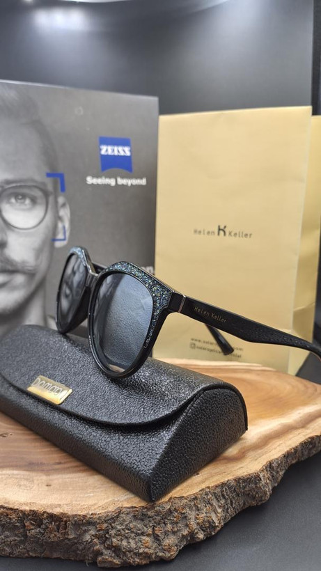 عینک افتابی هلن کلر با عدسی های جیوه ای و فریم نگین کاری شده برای افتاب شدید به شدت مناسب میباشد.