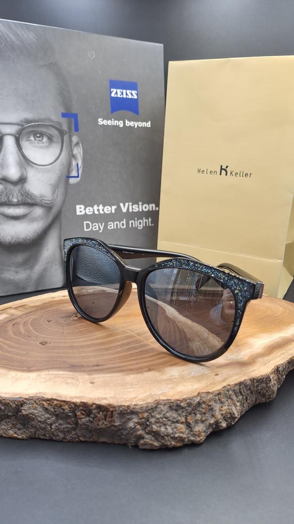 عینک افتابی هلن کلر با عدسی های جیوه ای و فریم نگین کاری شده برای افتاب شدید به شدت مناسب میباشد.